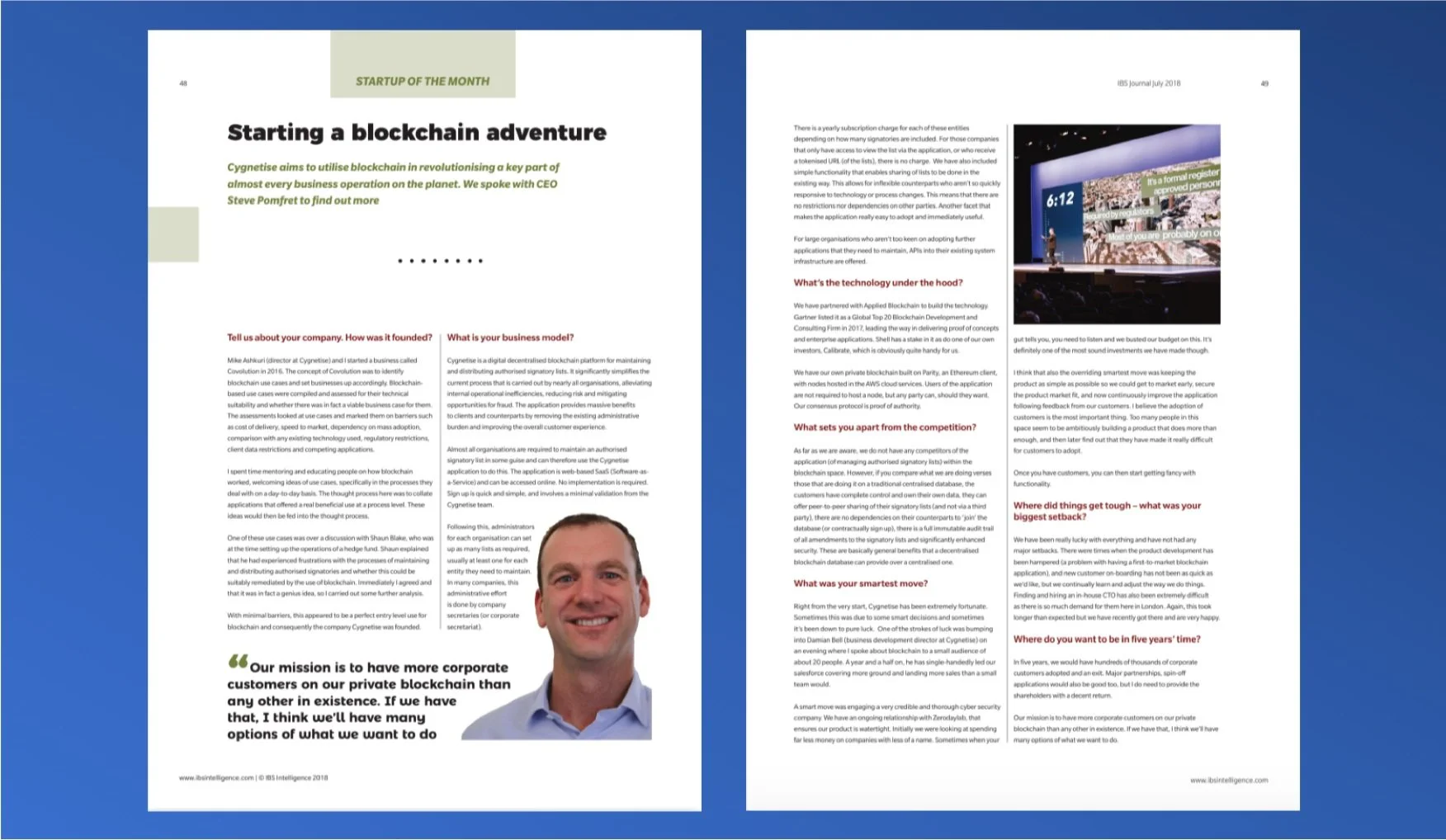 Cygnetise was featured as Startup of the Month in the July edition of IBS Journal. In the interview below, our CEO Steve Pomfret talks about the company, our technology and what the future holds.